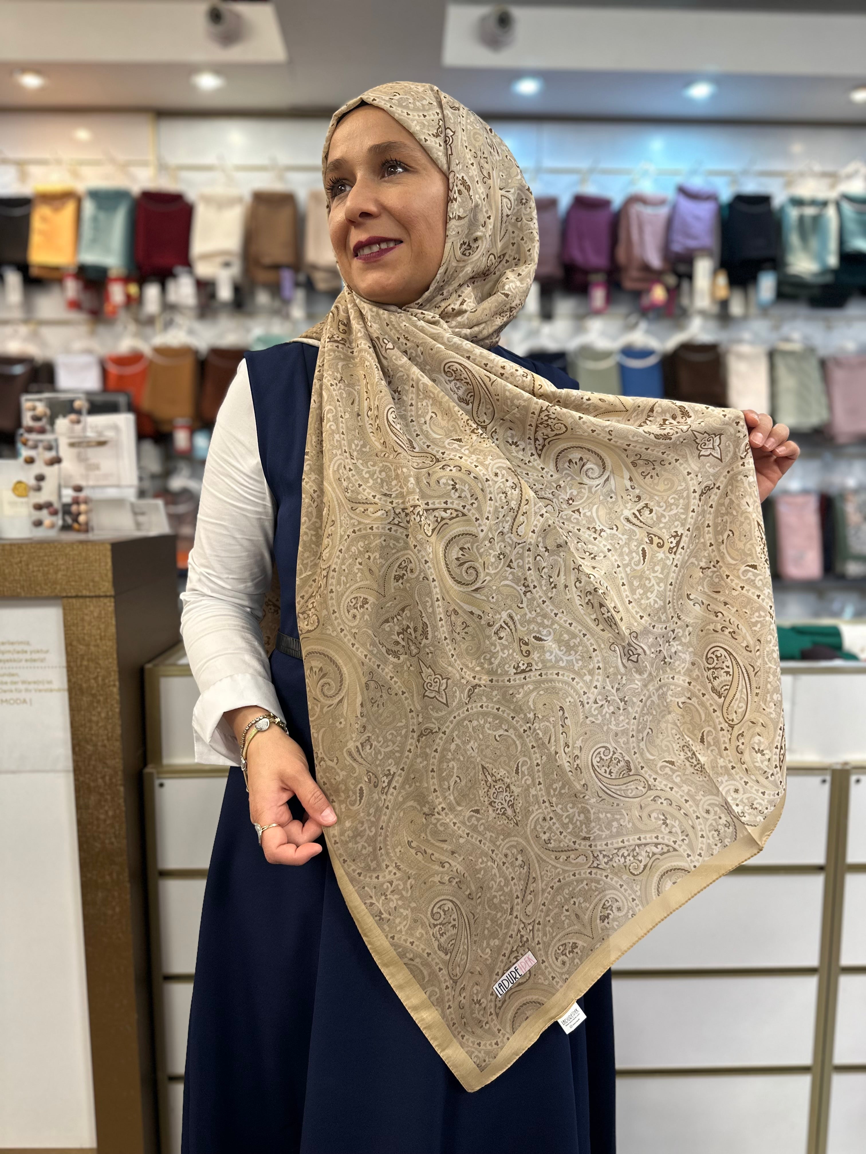 Dieser elegante Hijab Schal mit klassischem Paisley-Muster vereint Stil und Komfort. Mit den großzügigen Maßen von 200 x 80 cm bietet er perfekte Bedeckung und vielseitige Stylingmöglichkeiten.